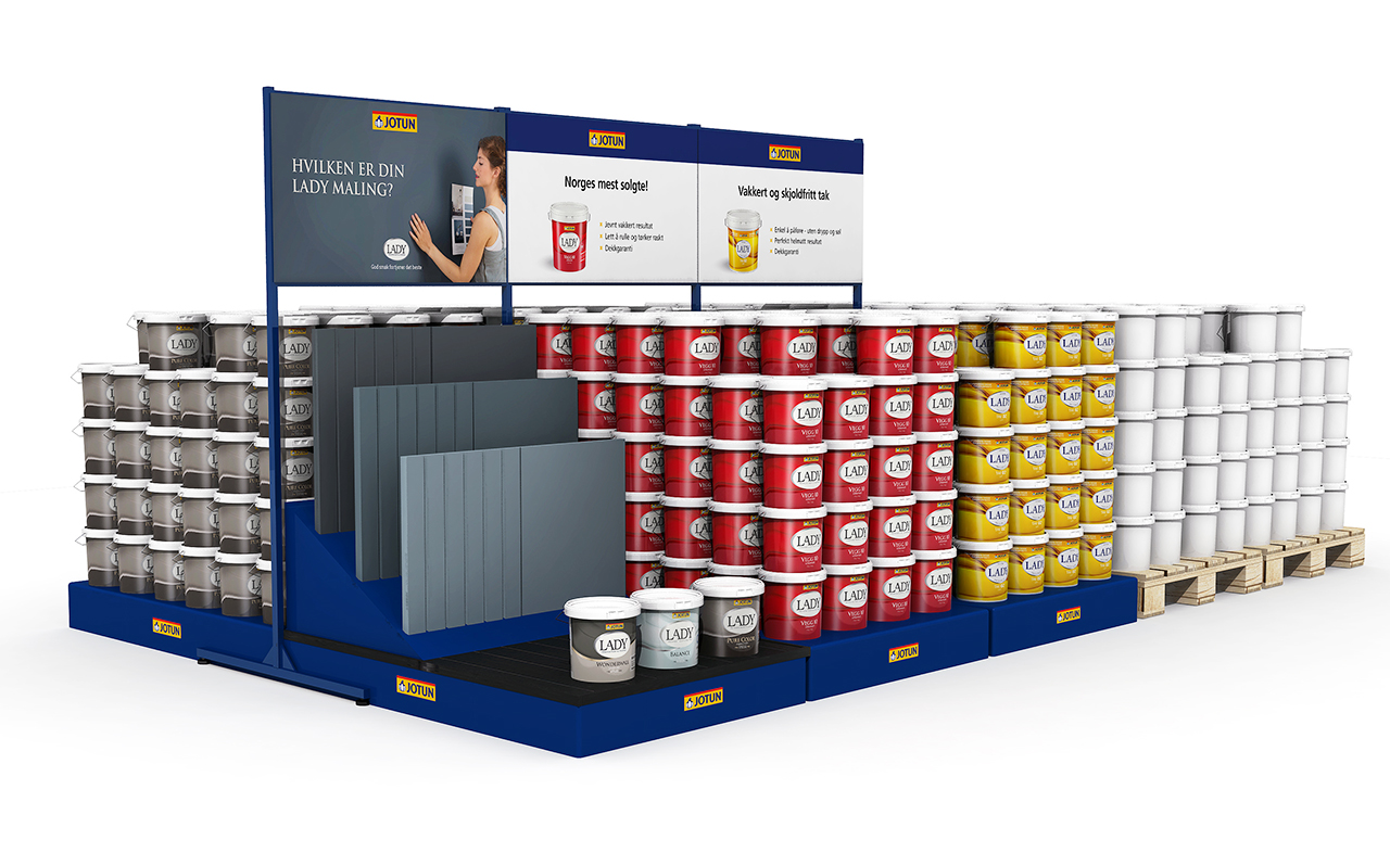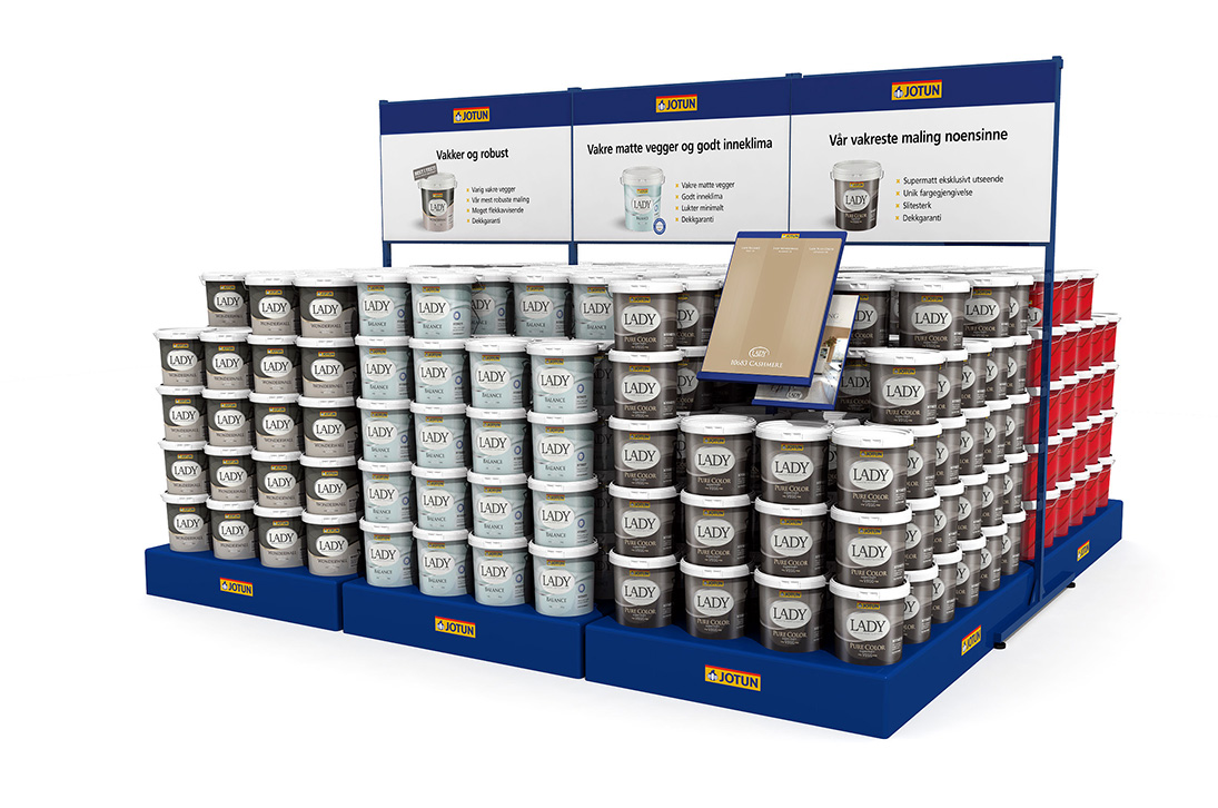Visualisation of Jotun paint buckets for retail displays in stores.